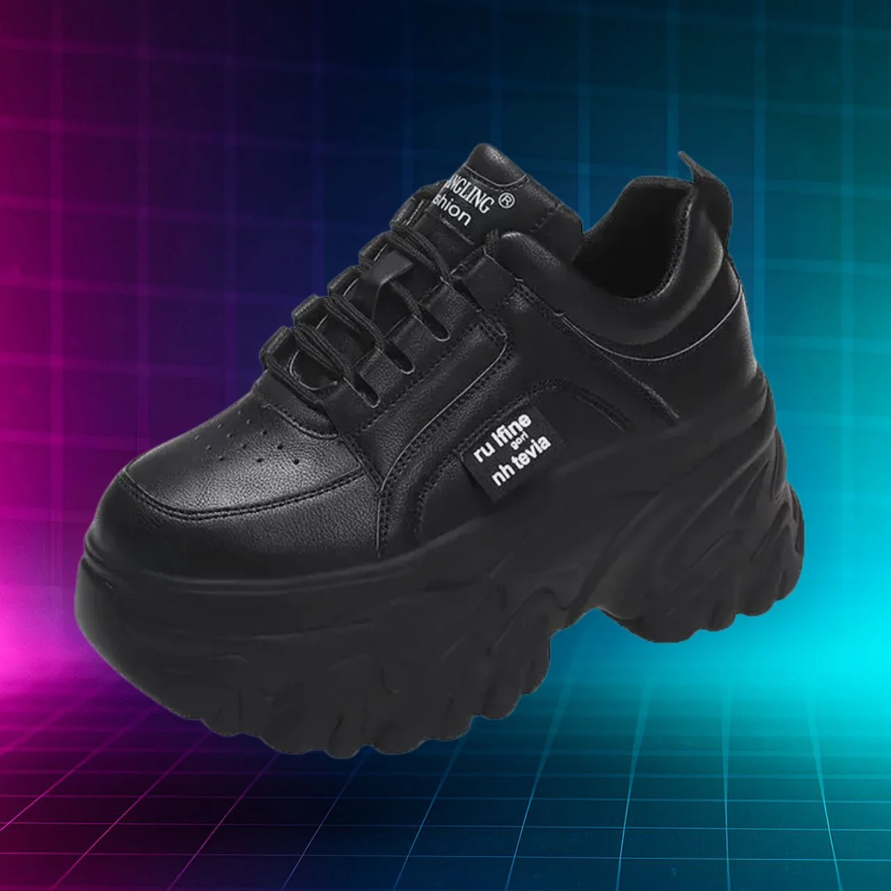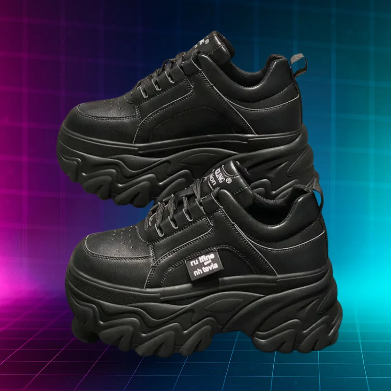 NEBULA E2 – Black Chunky Platform Sneakers for Women