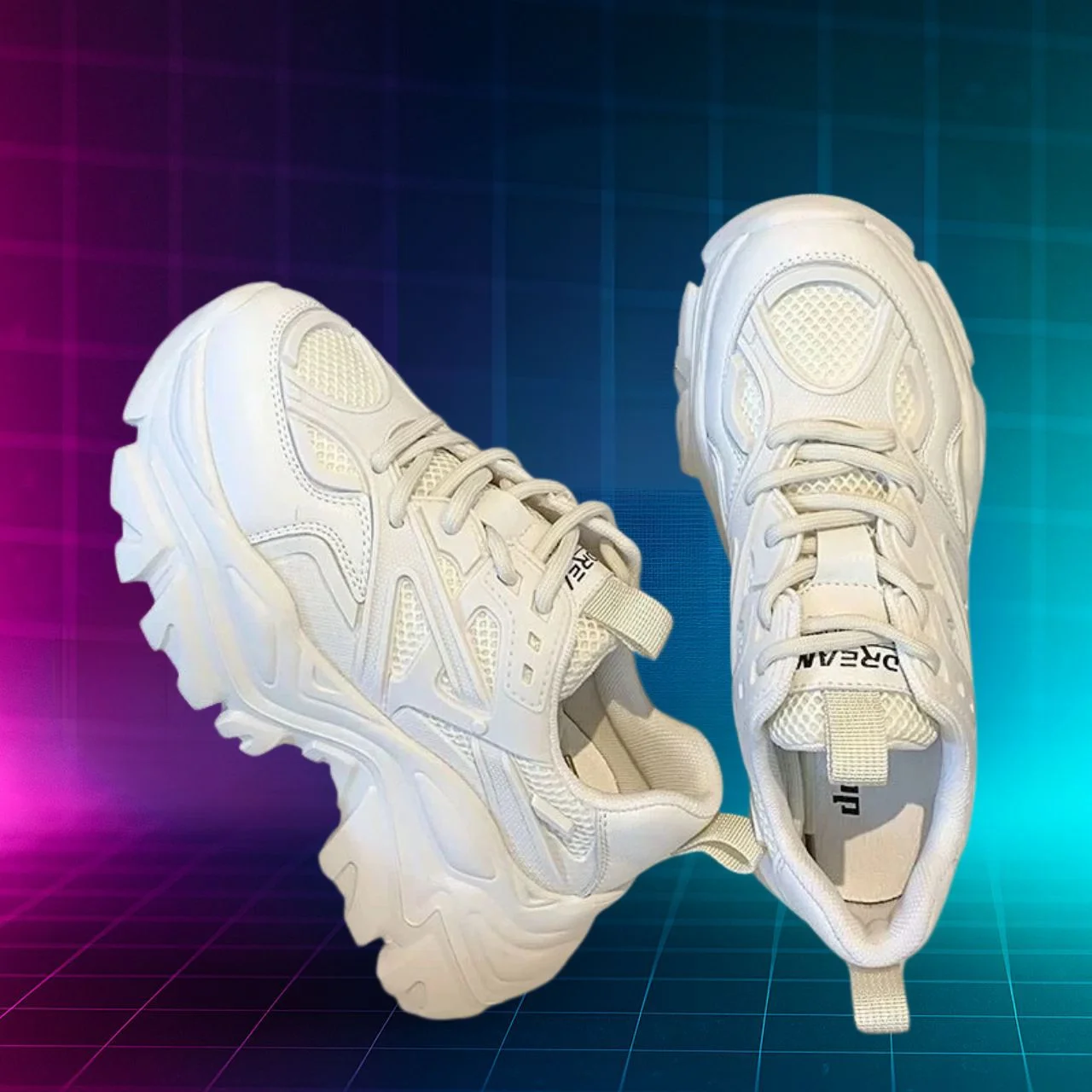SOLARIS F1 – bold chunky sneakers combining vintage dad style with modern comfort.